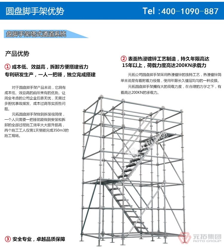 橋梁專用承插型盤扣式腳手架,圓盤式腳手架具有基本構(gòu)件少、架設(shè)及拆卸作業(yè)方便、施工工效高、承載力強(qiáng)等特點,被廣泛應(yīng)用于橋梁、隧道、電力、石化、造船、鐵路、機(jī)場、碼頭等工業(yè)及民用建筑的工程領(lǐng)域。相對于鋼管扣件式腳手架和碗扣式腳手架,圓盤腳手架有不可替代的優(yōu)勢。