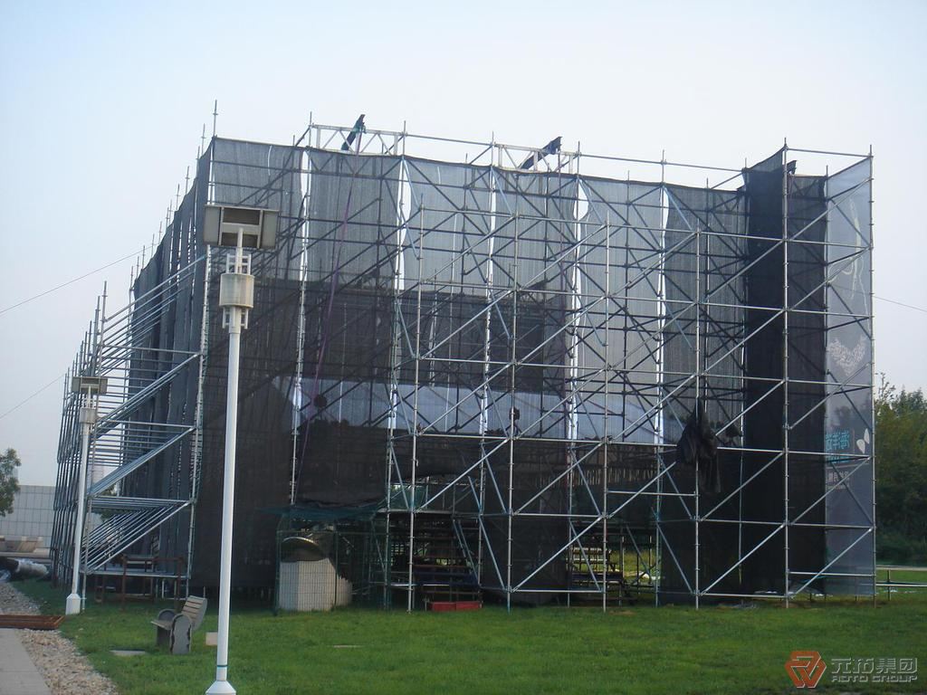 3、多種規(guī)格鋼管組合的腳手架。英式扣件由兩種以上的不同規(guī)格的鋼管構(gòu)成,如門式腳手架。